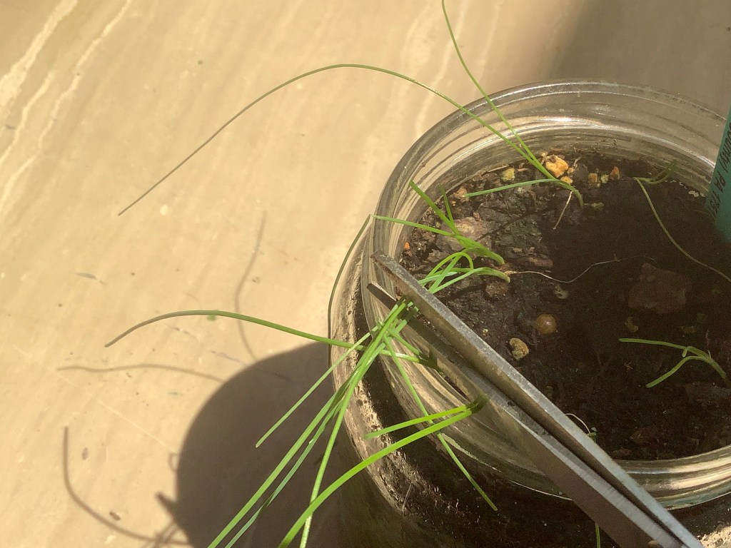 For the chives all I am going to do is to give them a little haircut so they keep growing.