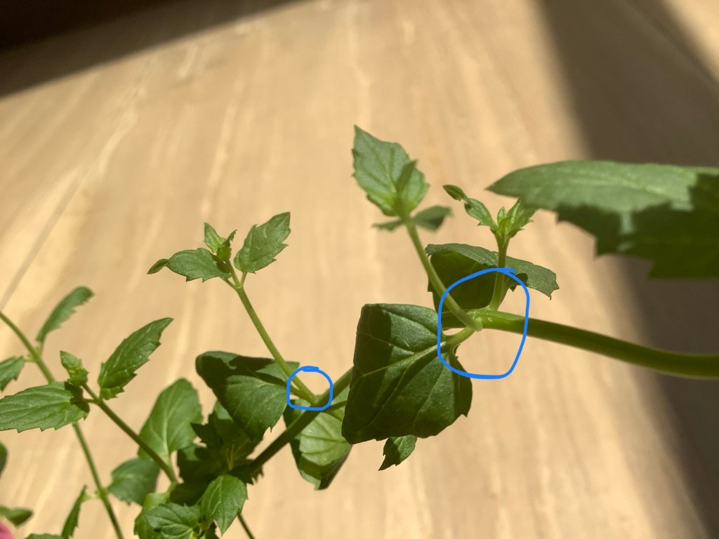 Sometimes when your mint stem gets pretty thick, you will start to see little branches coming out of the leaf node before you even cut the stem!