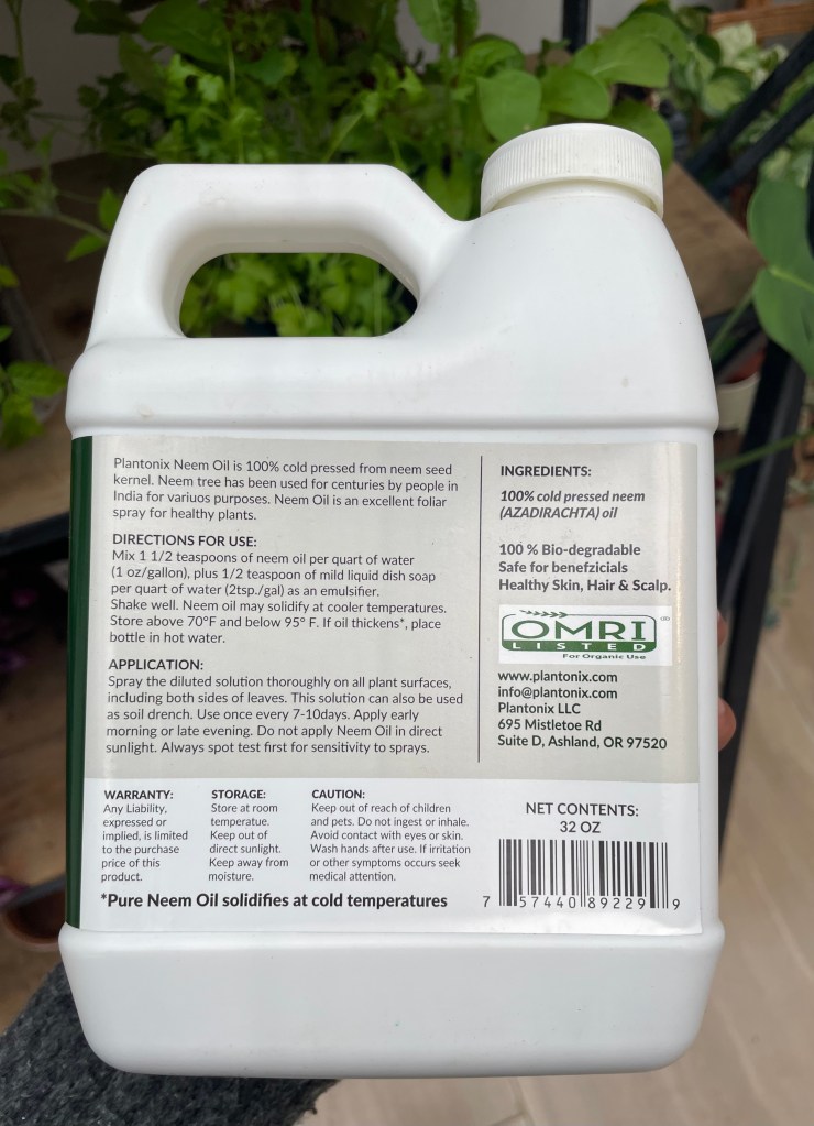 I always treat all new plants for pests just in case. Even if I do not find anything in a preliminary search. For this plant, I wiped the leaves with a neem oil solution. Neem oil is a natural pest prevention/treatment for plants! Check out my post about how to make a neem oil solution here!