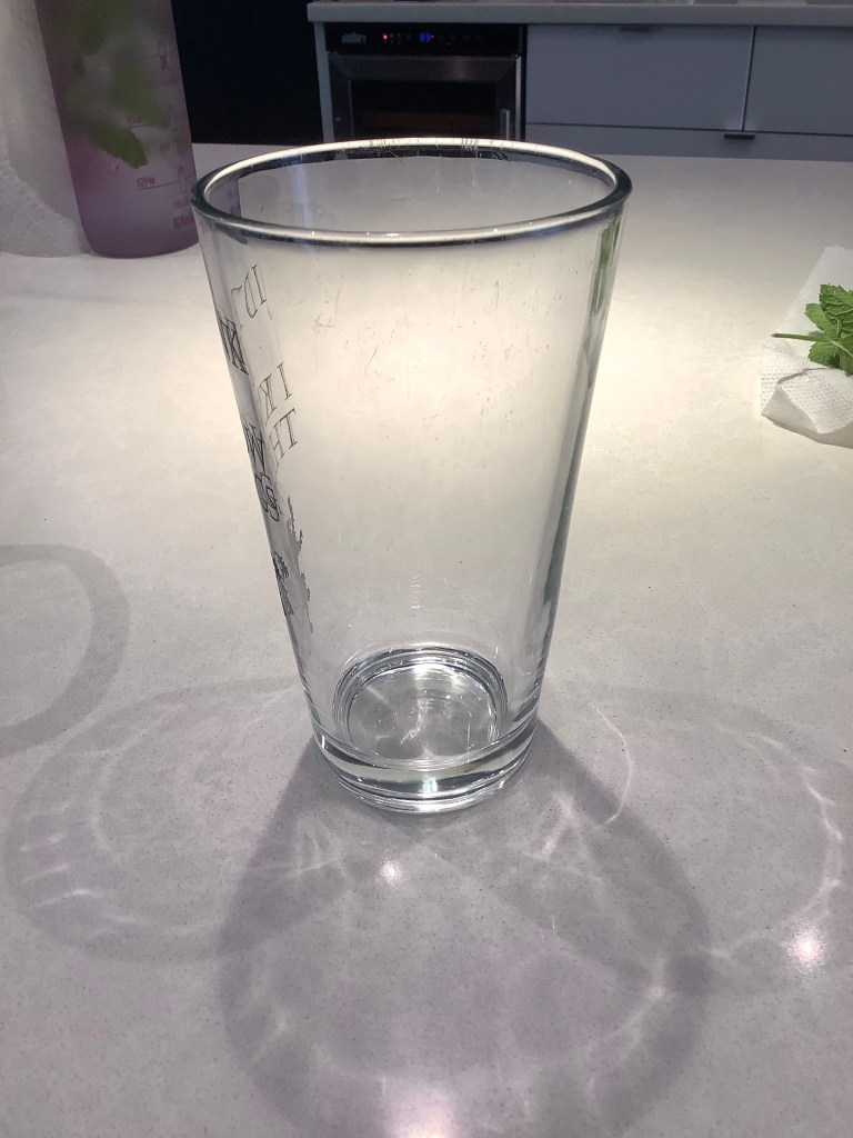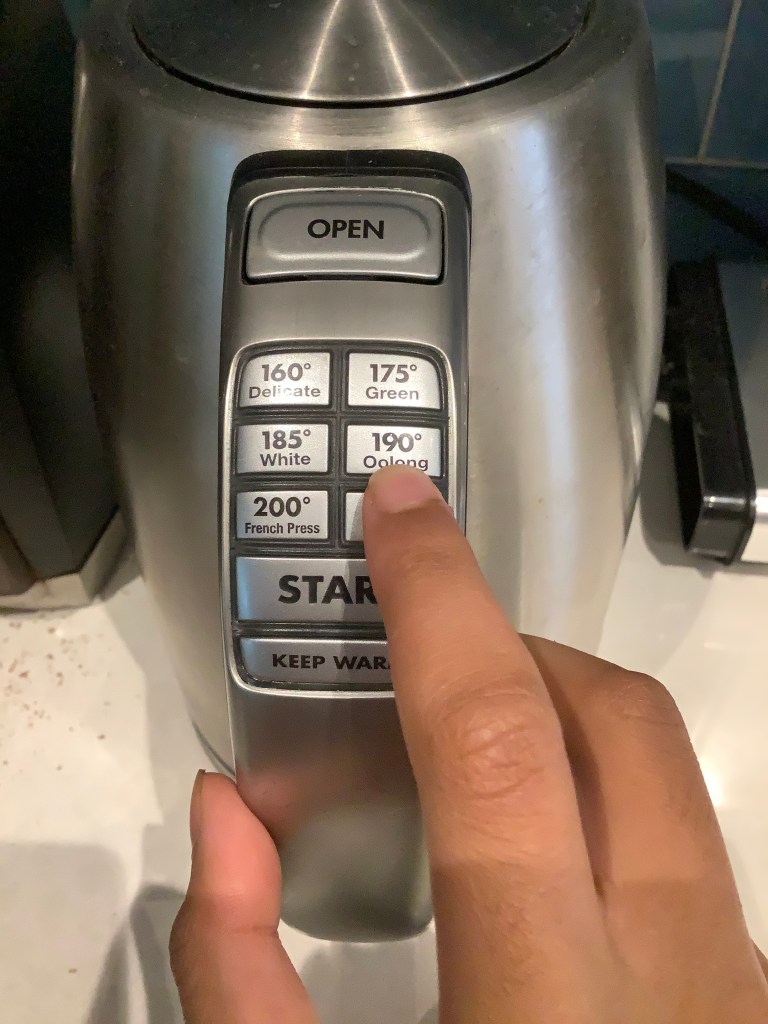 Once you have your mint in your pot and you water at 190 degrees Fahrenheit, you can pour your how water through the mint into your tea cup/pot till your mint is covered with water.