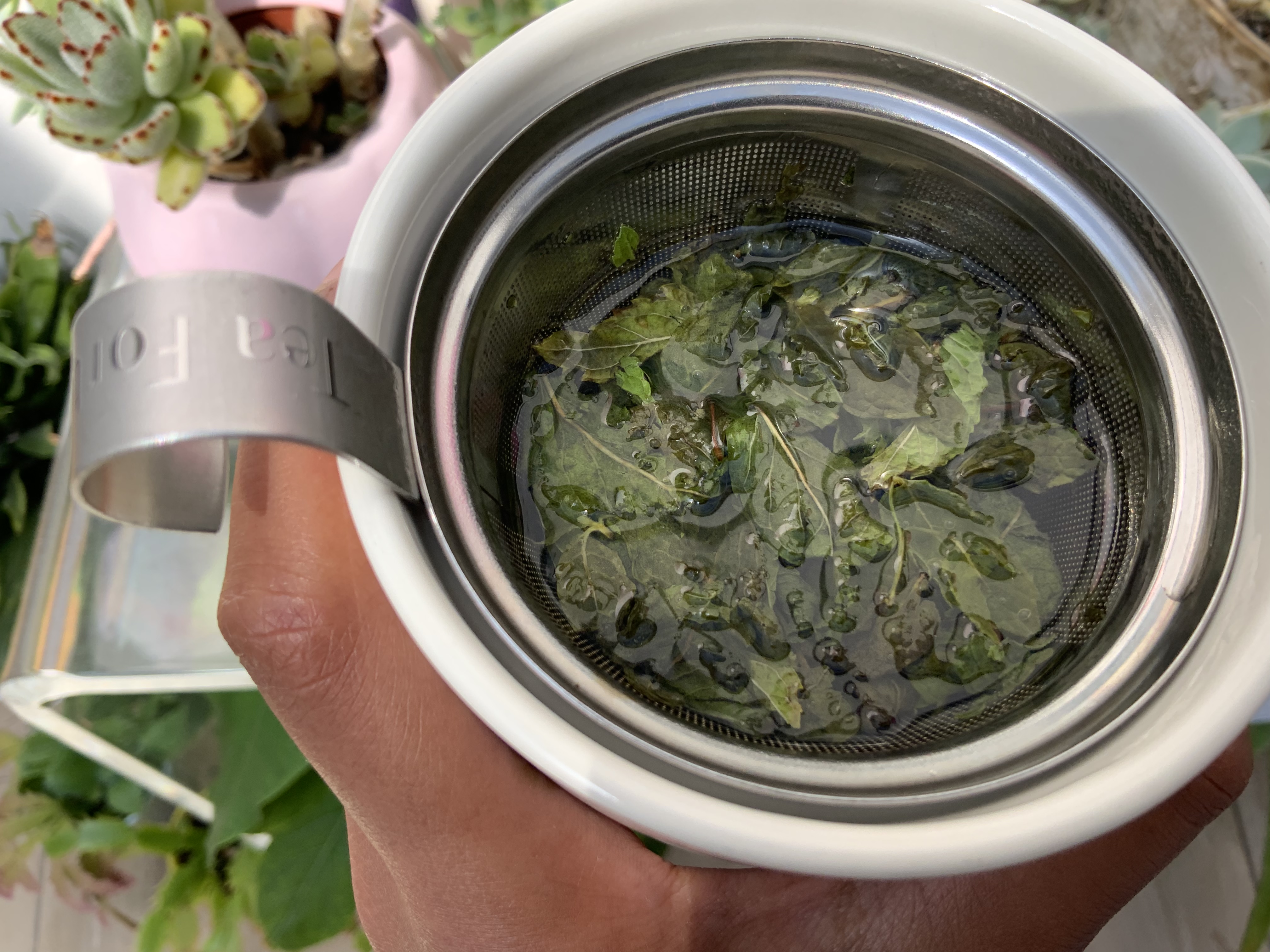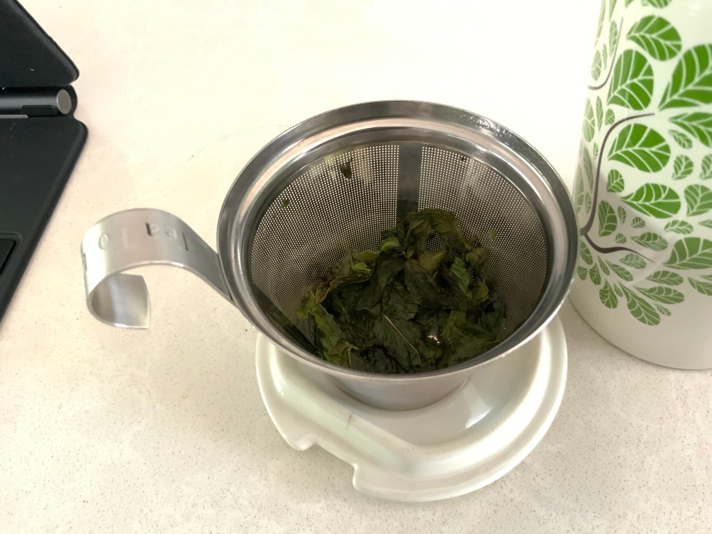 Finally, once your tea had steeped to the point where you like how it tastes, take out your mint strainer and enjoy!