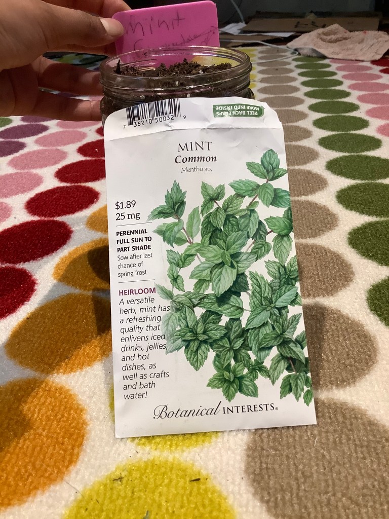 After your mason jar is filled, chose the type of herb seeds you want and plant them according to the packet they came in. Plus, don’t forget to label your jar so you know what is inside it!